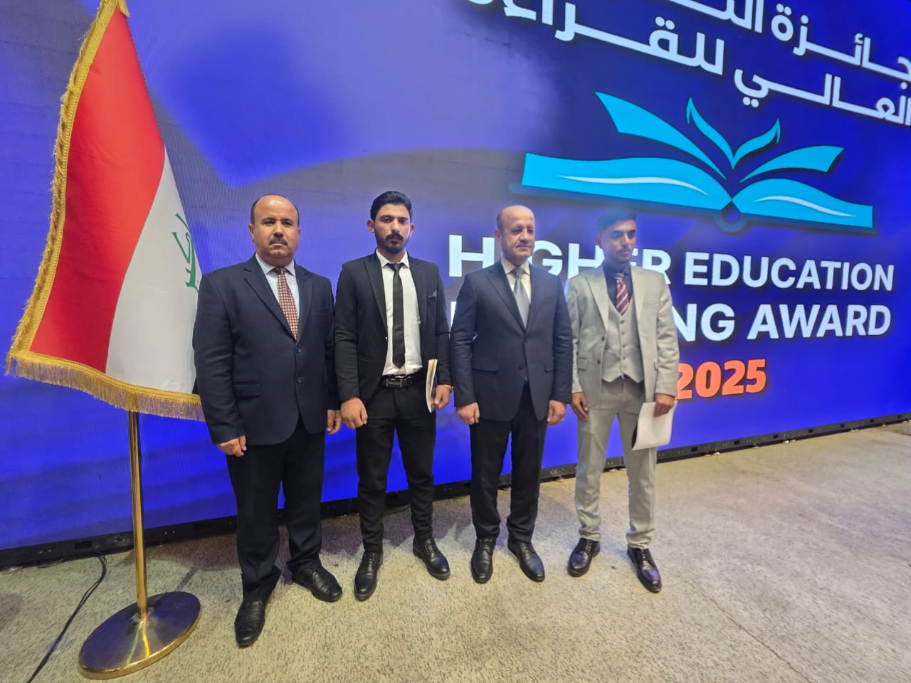 كرم معالي وزير التعليم العالي الدكتور نعيم العبودي المحترم في وزارة التعليم العالي اليوم الخميس ٢٧ / ١١ / ٢٠٢٥ وبحضور السيد رئيس جامعة تكريت الاستاذ الدكتور وعد محمود رؤوف المحترم والسيد عميد الكلية الاستاذ الدكتور قاسم علوان سعيد الطالبان علاء الدين حمد عايد من كلية الطب والحاصل على المركز الثالث والطالب ياسر خميس مصلح من كلية العلوم السياسية والحاصل على المركز الثالث والعشرين من أصل أربعين مركزاً ضمن مسابقة القراءة في نسختها الثالثة، التي نظّمتها الوزارة ، وبمشاركة (27,049 ألف) متنافساً من طلبة البكالوريوس والدراسات العليا والطلبة الدوليين الدارسين داخل العراق.