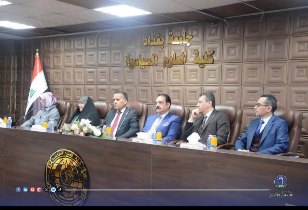 حضر ا.د قاسم علوان سعيد عميد الكلية حفل إطلاق المعايير الوطنية لاعتماد برامج العلوم السياسية في العراق، أقامت كلية العلوم السياسية جامعة بغداد وذلك يوم الاثنين 29 كانون الأول 2025. حضر الحفل ممثل معالي وزير التعليم العالي والبحث العلمي المحترم ، رئيس جهاز الإشراف والتقويم العلمي، الأستاذ الدكتور صلاح هادي صالح، ورئيس لجنة عمداء كليات العلوم السياسية الأستاذ المساعد الدكتور عادل عبد الحمزة ثجيل بديوي وعدد من السادة عمداء ورؤساء اقسام كليات العلوم السياسية في العراق.