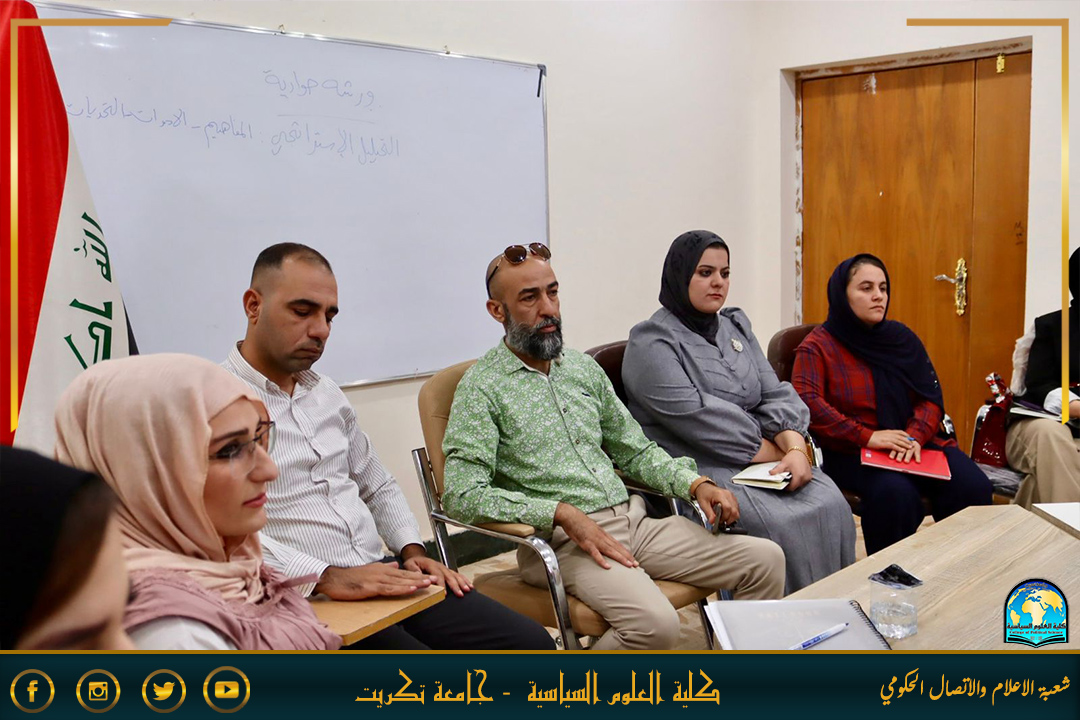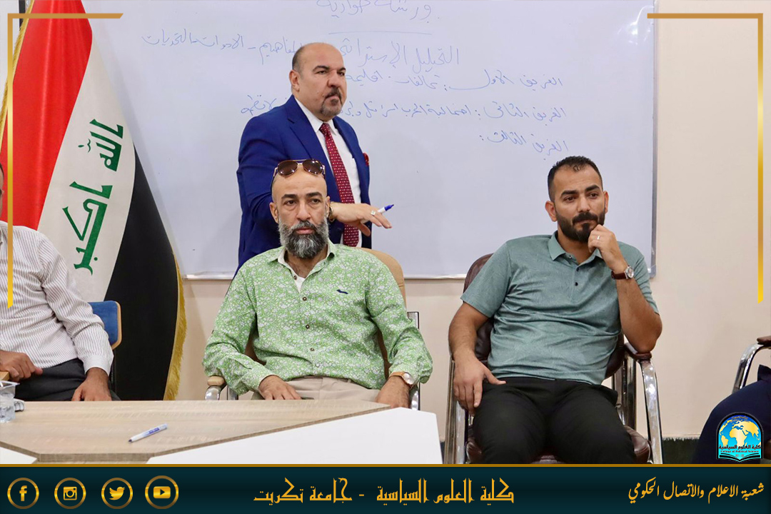 أقامت كلية العلوم السياسية ورشة حوارية بعنوان: "أنواع التحليل الاستراتيجي: المفاهيم، الأدوات، التحديات"، خُصصت لطلبة الدراسات العليا، وبحضور نخبة من أساتذة الكلية الأفاضل.