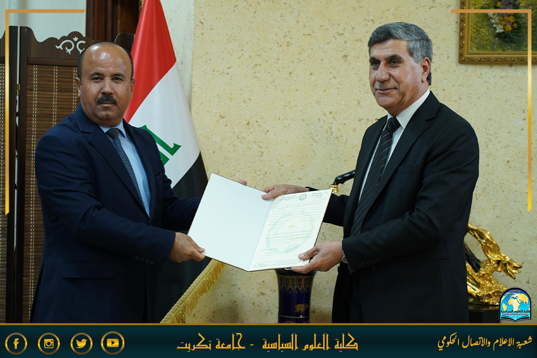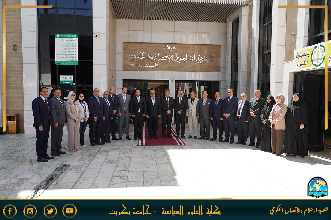 انطلاقا من الدور الذي تلعبه الجامعات العراقية في تحقيق الاستقرار المجتمعي شارك الدكتور قاسم علوان سعيد عميد كلية العلوم السياسية ممثلا عن جامعة تكريت في اجتماع اللجنة الوطنية الدائمة للتوعية والإرشاد المجتمعي يوم السبت الموافق 20/أيلول/2025 في كلية بغداد للعلوم الاقتصادية الجامعة وحسب الامر الديواني والصادر من مكتب رئيس مجلس الوزراء (251234) في 14/ 9/ 2025.