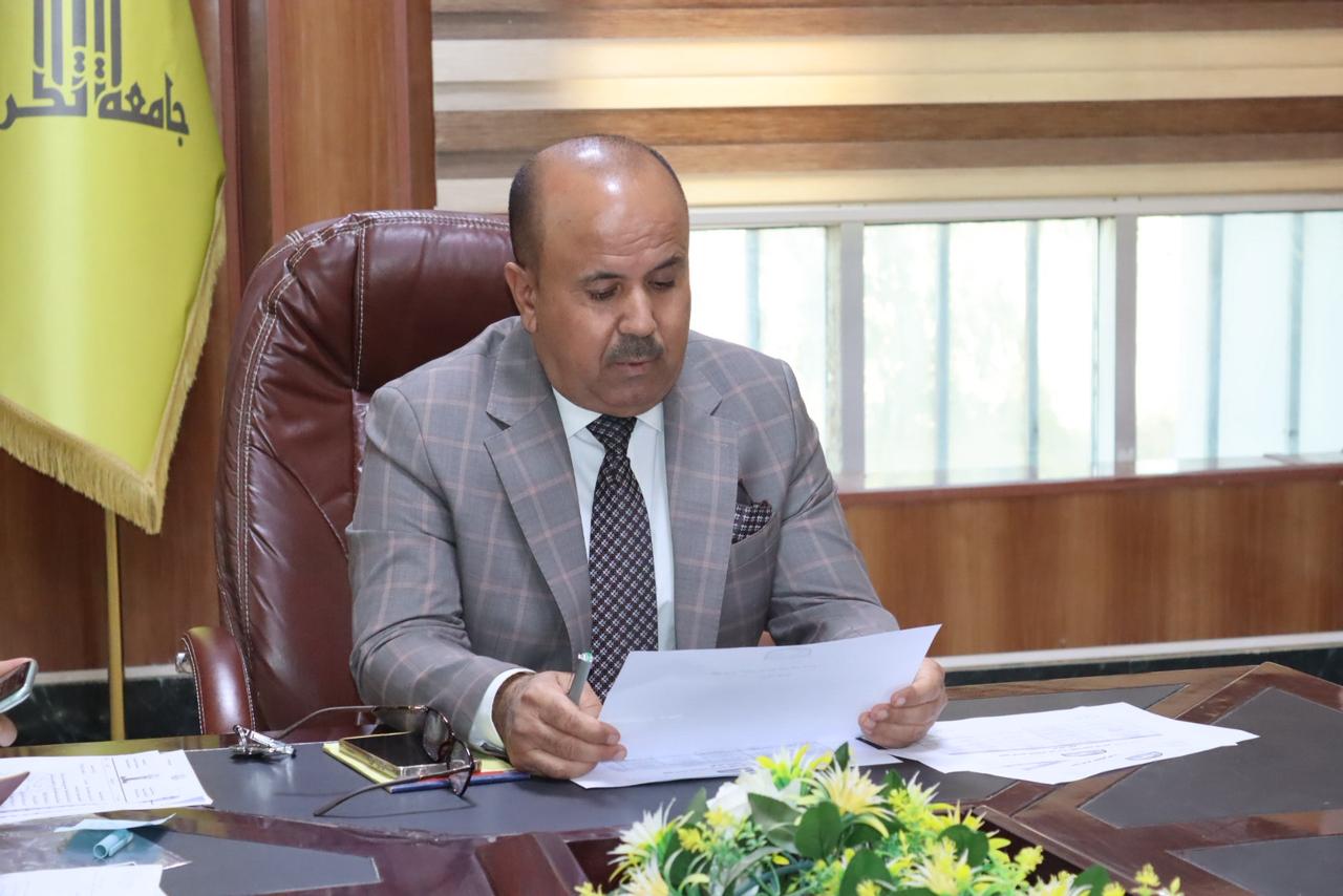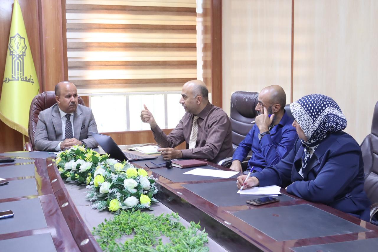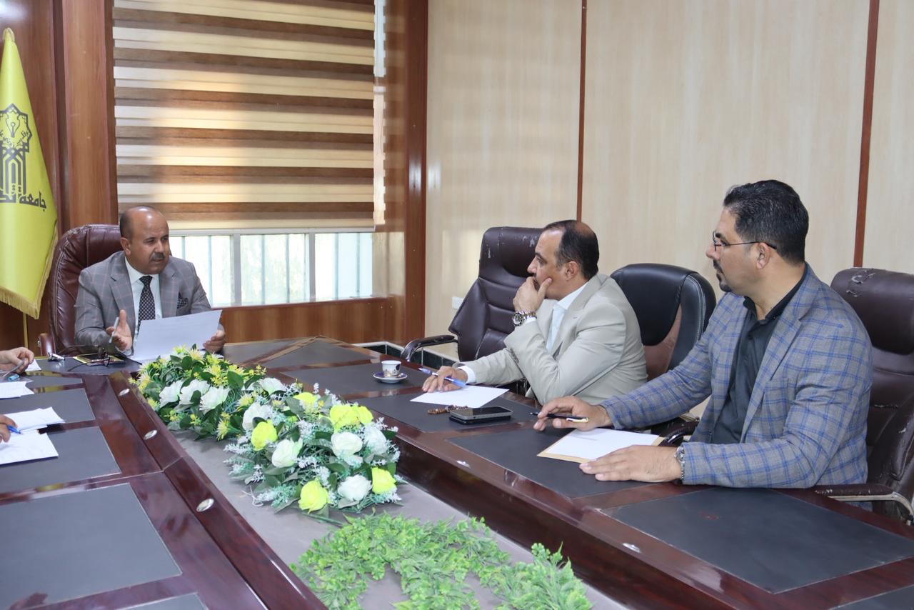 اجتمعت يوم الاحد الموافق 28/9/2025 اللجنة المكلفة بتطبيق منصة التعليم العالي (نظام إدارة معلومات الطالب SIS) بحضور السيد عميد الكلية أ.د. قاسم علوان رئيس اللجنة والسادة أعضاء اللجنة كافة.