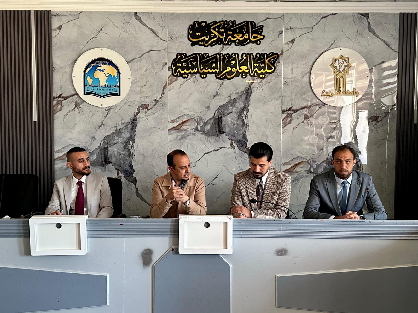 برعاية الأستاذ الدكتور وعد محمود رؤوف رئيس جامعة تكريت المحترم، وبإشراف مباشر من قبل الأستاذ الدكتور قاسم علوان سعيد عميد كلية العلوم السياسية وبالتعاون مع الأستاذ المساعد الدكتور سياف عبد حسين مدير مركز التعليم المستمر، أقامت الكلية اليوم الثلاثاء الموافق 14/4/2026، على قاعة السلام دورة علمية موسومة بـ "العلاقات العراقية الإقليمية والدولية في ظل الحكومة الجديدة".