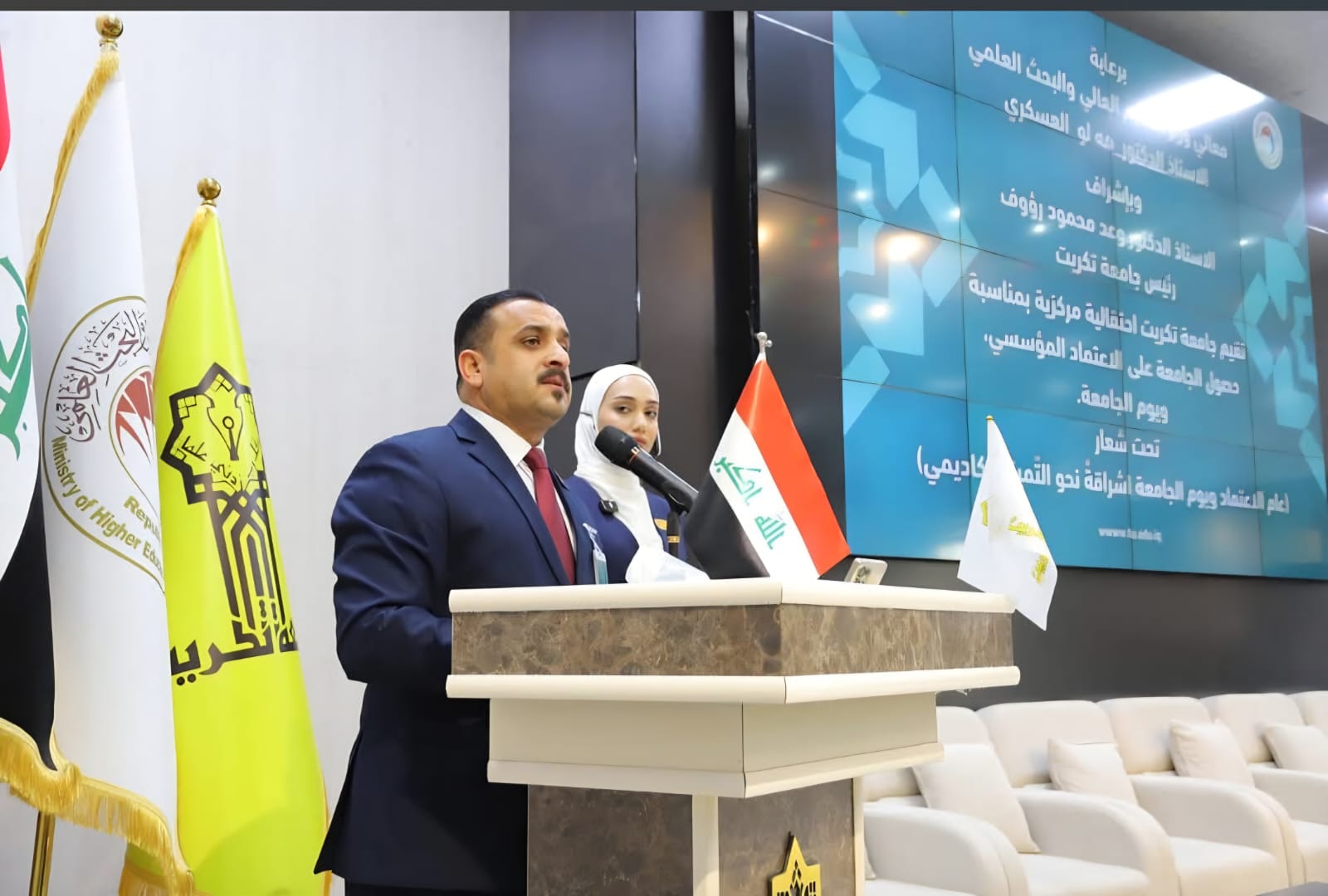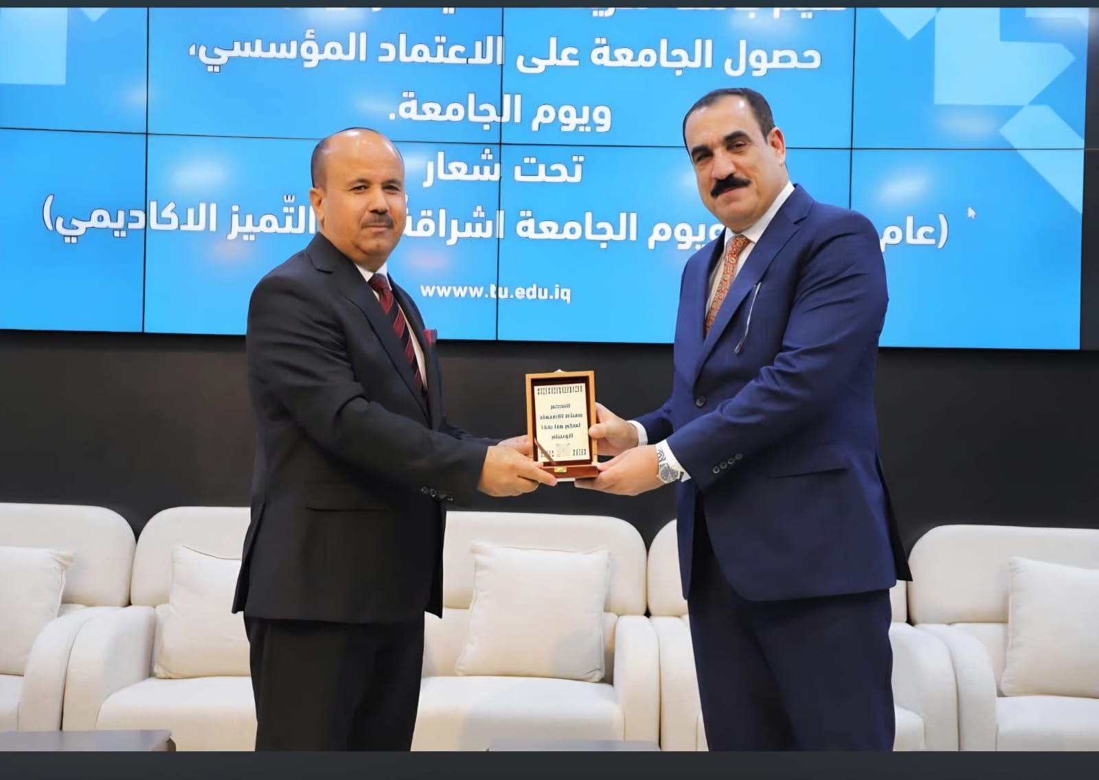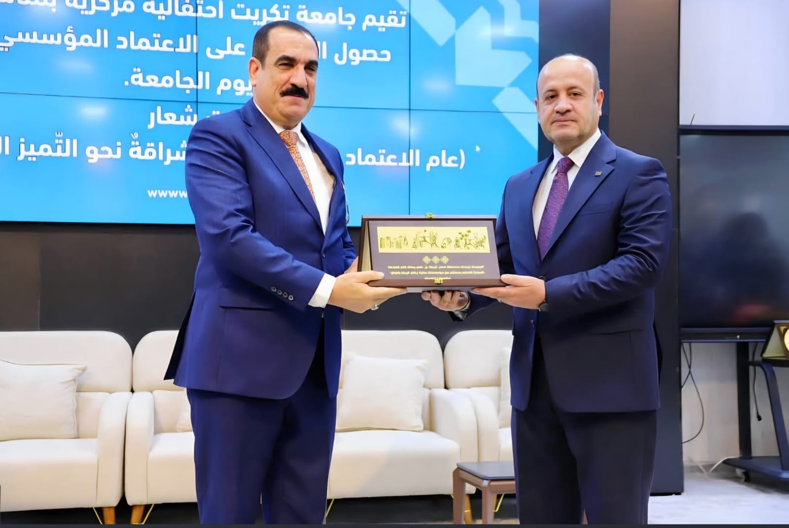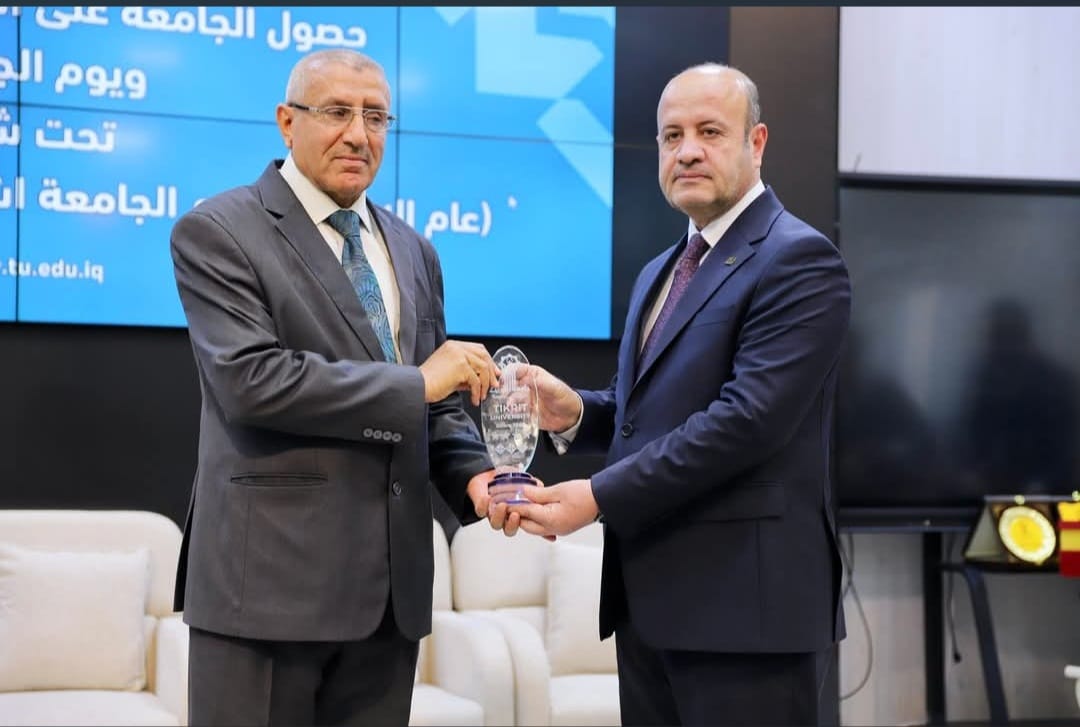 وضمن فعاليات الحفل، تم تكريم السيد عميد كلية العلوم السياسية الأستاذ الدكتور قاسم علوان سعيد، بدرع التميز من قبل السيد رئيس الجامعة، تقديراً لجهوده القيادية المتميزة وإشرافه الميداني على ملف الاعتماد داخل الكلية، مما ساهم في تعزيز مكانة الجامعة العلمية.