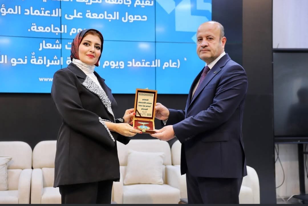في احتفالية كبرى شهدتها أروقة الجامعة، كرم السيد رئيس الجامعة الأستاذ الدكتور وعد محمود رؤوف المحترم، كلية العلوم السياسية إلى جانب عدد من كليات الجامعة المتميزة، وذلك احتفاءً بالإنجاز التاريخي الذي حققته المؤسسة بحصولها على الاعتماد المؤسسي الوطني.