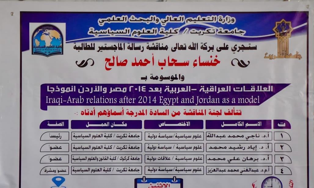 رسالة ماجستير تناقش العلاقات العراقية - العربية بعد 2014 مصر والاردن انموذجا